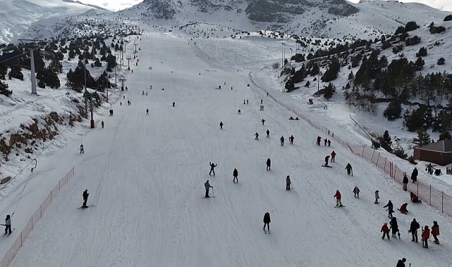 Ergan'da kayakçılar kayak keyfi yaşıyor. Kayak yapmayanlar ise aileleriyle birlikte Ardıçlı gölü manzarasının tadını çıkardı.