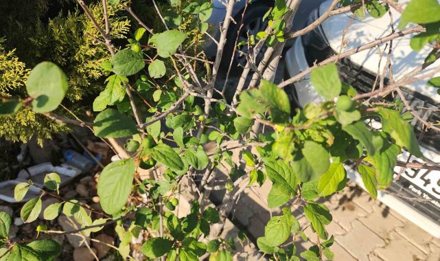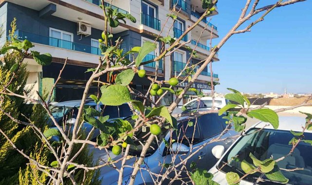 Türkiye'de yaşanan hava değişiminin en çok etkilendiği illerden olan Hatay'da son yılların en kurak dönemi yaşanıyor. Yağışlı havasıyla bilinen kentte yeteri kadar yağış olmazken, adeta mevsimlerde de kayma yaşandı. Mevsimlerin değişmesiyle birlikte Hassa ilçesinin Ardıçlı Mahallesi'nde bir binanın otoparkında bulunan erik ağacı meyve verdi.