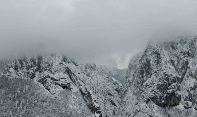 Kastamonu'da Küre Dağları Milli Parkı içerisinde yer alan Ersizlerdere Kanyonu Tabiat Parkı, kar manzarasıyla ziyaretçilerini mest ediyor.