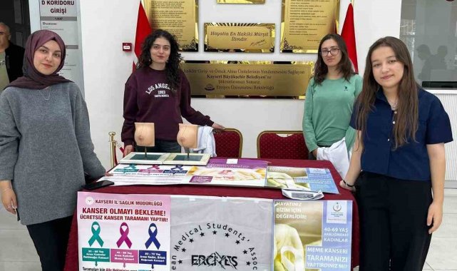 Erciyes Üniversitesi (ERÜ) Tıp Fakültesi Gevher Nesibe Hastanesi Poliklinikler Girişinde Genel Cerrahi Anabilim Dalı Araştırma Görevlisi Dr. Cihan Biçer ve Erciyes Üniversitesi Tıp Fakültesi öğrencilerinden oluşan Avrupa Tıp Öğrencileri Birliği (European Medical Students Association) Erciyes Kulübü olarak meme kanseri farkındalığını artırmak amacıyla 'Meme Muayenesi Nasıl Yapılır?'' konulu stant etkinliği düzenlendi. Halk Sağlığı Direktörlüğü bünyesindeki etkinlikte; genel cerrahi ana bilim dalı ile birlikte hasta ve hasta yakınlarına erken teşhisin önemi ve meme muayenesi anlatıldı. Etkinlikte; toplumda farkındalık oluşturarak erken tanı sayesinde yaşam kurtarmanın önemine dikkat çekildi.