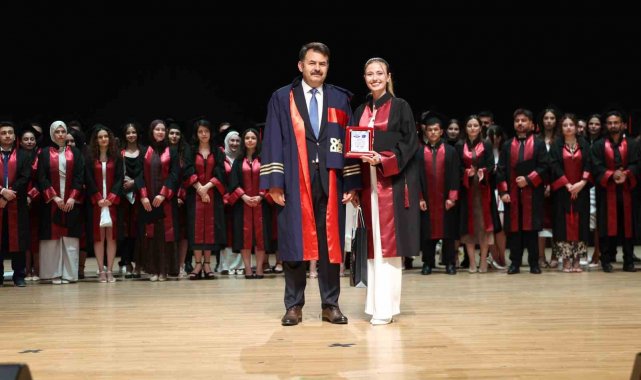 ERÜ Veterinerlik Fakültesi mezuniyet töreni Erciyes Kültür Merkezi'nde yapıldı. Törene; ERÜ Rektör Yardımcısı Cevdet Kırpık, Türk Veteriner Hekimleri Birliği Başkanı Ali Eroğlu, akademisyenler, veliler ve öğrenciler katıldı. Törende açılış konuşmasını yapan ERÜ Rektör Yardımcısı Cevdet Kırpık, öğrencileri tebrik ederek hayatlarında başarılar diledi. Kırpık; "Bugün burada genç veteriner hekim adaylarının mezuniyet sevincini paylaşmak için bir aradayız. Eğitim süreçleri sadece bilgi kazandırmakla kalmaz, beceri kazandırır ve değerleri kişiselleştirir. Üniversitemiz; bilgi, beceri ve değerler üzerine inşa edilmiş güçlü bir eğitim anlayışına sahiptir. Fakültemiz, güçlü araştırma altyapısı ve alanında uzman, deneyimli akademik kadrosuyla öğrencilerimizin teorik bilgilerini pratiğe dökme, mesleki becerilerini geliştirme ve etik sorumluluklarını içselleştirme konusuna çok önemli bir katkı sunmuştur. Veteriner hekimlik sadece hayvan sağlığıyla değil insan sağlığı, gıda güvenliği, çevre duyarlılığı ve kamu sağlığı ile doğrudan ilişkilidir. Bu yönüyle mesleğimiz, bilimsel yetkinlik kadar, millî, manevî, insani ve evrensel değerlere dayalı bir mesleki sorumluluk gerektirir. Değerlerin başında vatan sevgisi, bayrak sevgisi ve millet bilinci gelir. Çünkü her meslek, bir ülkenin geleceğini şekillendiren temel eserlerinden biridir. Sadece bilgi ve beceriye sahip olmak yetmez; o bilgiyi milletin iradesine sunma bilinci, o beceriyi insan ve hayvan yaşamını yüceltmek için kullanmak gerekir. İşte bu noktada değerler, en az bilgi ve beceriler kadar önemlidir. Bu değerleri önemseyen, sorumluluk duygusuyla hareket eden hekimler sayesinde güçlü bir Türkiye inşa edilecektir. Sevgili öğrenciler, hepinizi kutluyorum. Yolunuz açık, emeğiniz bereketli olsun" şeklinde konuştu.