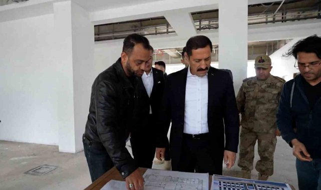Hatay Valisi Mustafa Masatlı, inşası devam eden Erzin hükümet konağında incelemelerde bulundu.