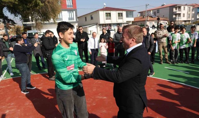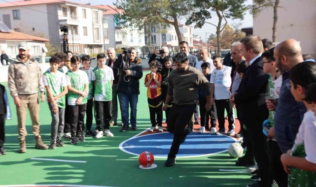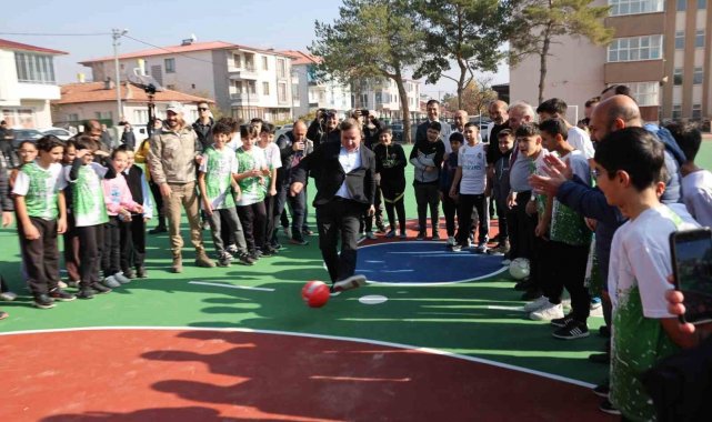 Açıklamaların ardından Vali Aydoğdu ve birim amirleri, öğrencilerle birlikte kauçuk zeminli oyun alanında futbol oynadı.