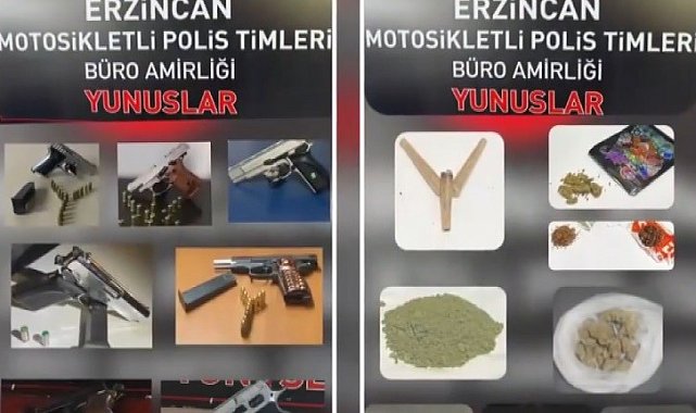 Erzincan'da Asayiş Şube Müdürlüğü Motosikletli Polis Timlerince yapılan çalışmada 4 adet ruhsatsız, 3 adet kurusıkı tabanca ele geçirildi.