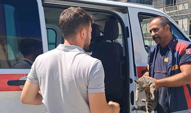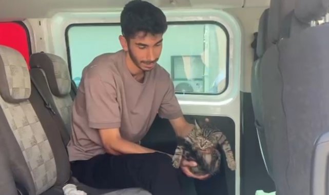 Aracını park ettiği yerden almaya giden sürücü, ön kaputtan seslerin geldiğini duydu. Kaput kapağını kaldıran sürücü, motor kısmına kedinin sıkıştığını anlayınca durumu itfaiyeye bildirdi.