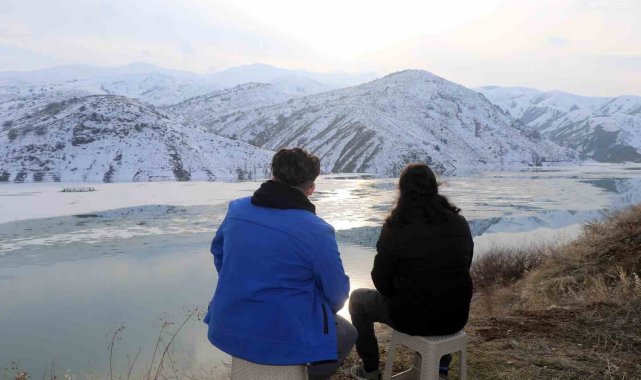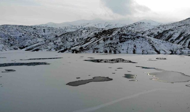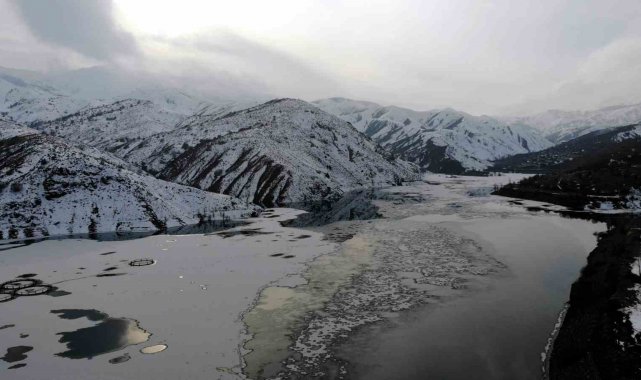 Erzincan'da baraj buzla kaplandı