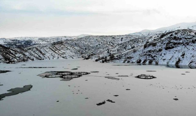 Kar yağışının olmadığı ancak gece saatlerinde aşırı soğukların etkili olduğu Doğu Anadolu Bölgesi'ndeki dere, çay ve barajlar dondu. Sıcaklığın sıfırın altında 20 dereceye kadar düştüğü Erzincan'ın Çatalarmut köyündeki Göyne Sulama Barajı'nın yüzeyi de buzla kaplandı. Yaz mevsiminde yaklaşık 48 bin dekarlık tarım arazisini sulamak için kullanılan, aynı zamanda kafes balıkçılığı da yapılan barajda balık kafesleri buz kütlesinin altında kaldı. Havadan görüntülenen ve güzel manzaraların oluştuğu barajda bazı vatandaşlar taşla buzun kalınlığını test etmeye çalıştı.