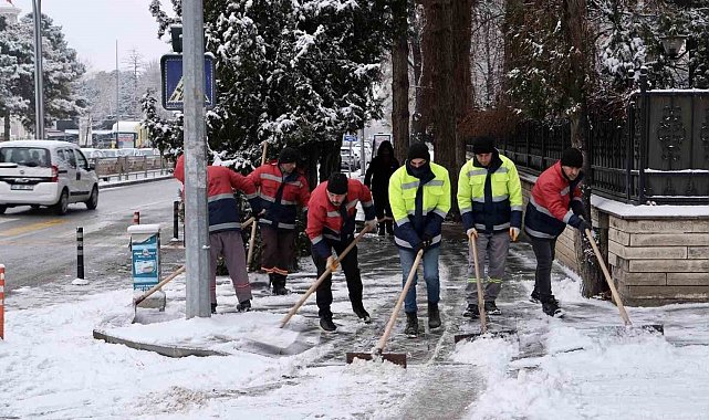 Ekipler, tüm mahallelerde, ana arterlerde ve sokaklarda kar küreme işlemlerine devam ederken, yaya kaldırımlarında da temizlik çalışmaları sürdürülüyor.