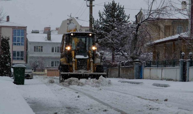 Erzincan'da belediye ekipleri karla mücadele çalışmasını sürdürüyor