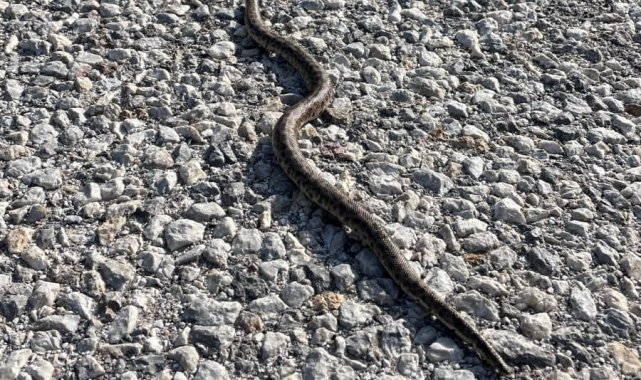 Erzincan'ın Kemah ilçesinde doğa yürüyüşü yapan fotoğraf sanatçısı Emrah Karakoç, yürüyüş sırasında karşılaştığı bir yılanı görüntüledi. Karakoç, çektiği fotoğrafları Erzincan Binali Yıldırım Üniversitesi'nde görevli öğretim üyesi Dr. Evren Buğa ile paylaştı.