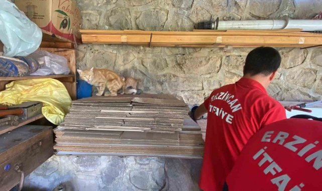 Erzincan'da boruya sıkışan yavru kediyi itfaiye kurtardı