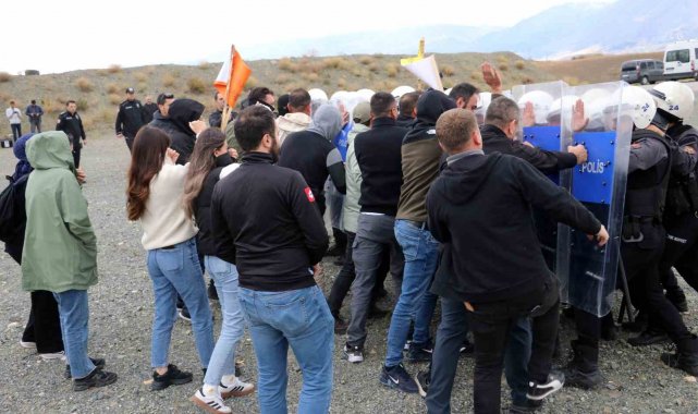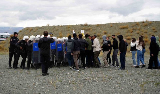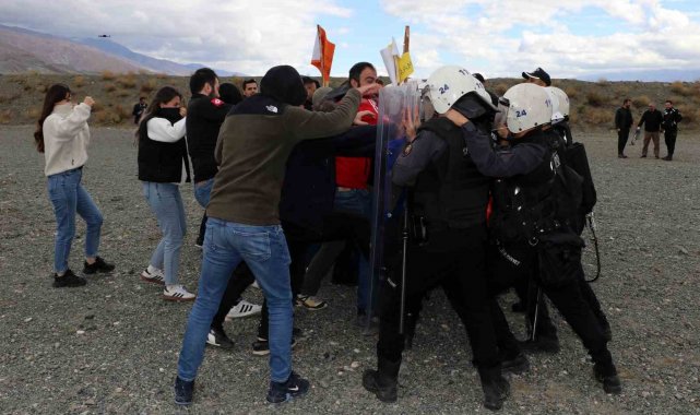 Erzincan İl Emniyet Müdürlüğü'nün hizmet içi eğitimleri kapsamında düzenlenen çevik kuvvet tatbikatı, kentte adeta gerçeğini aratmayan bir toplumsal olay müdahalesine sahne oldu.