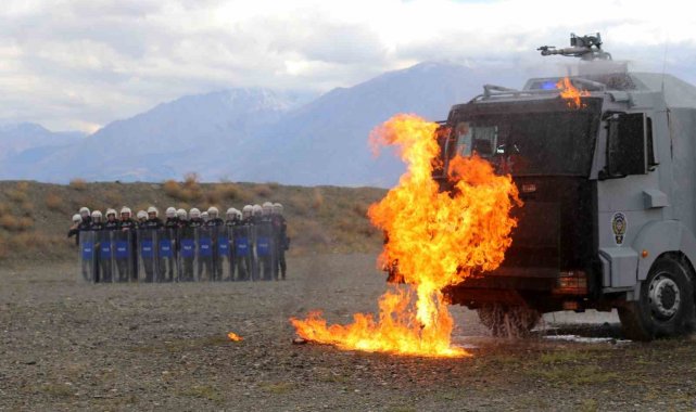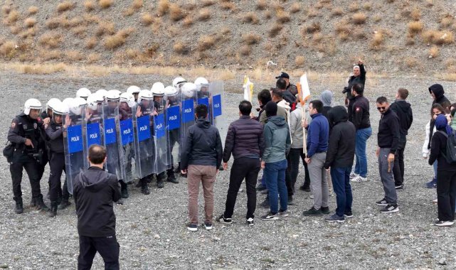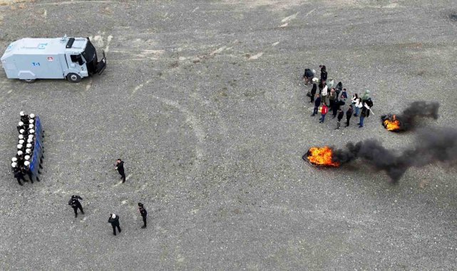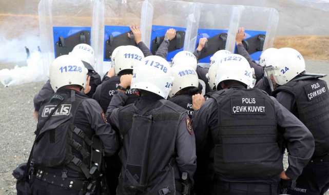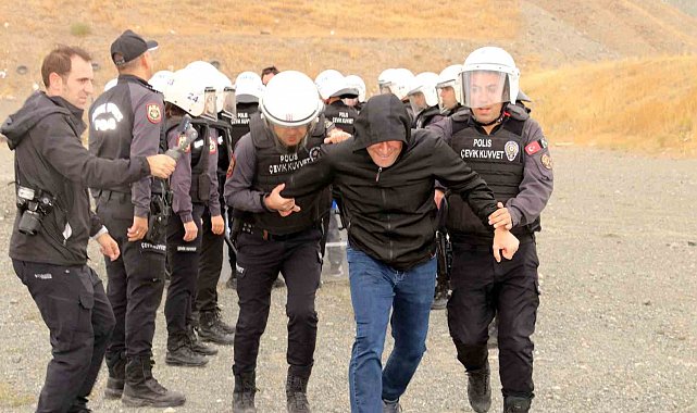 Çevik Kuvvet Müdürlüğü koordinesinde gerçekleştirilen eğitimlerde polisler, teorik bilgilerin yanı sıra sahada uygulamalı tatbikatlarla da kendilerini geliştirme fırsatı buldu. Senaryo gereği tatbikatta göstericilerin taş atarak ve lastik yakarak çıkardığı olaylara çevik kuvvet polisleri TOMA desteğiyle müdahale etti. Arbede anlarının gerçeğini aratmadığı tatbikatta polis, göstericileri ablukaya alarak gözaltı yaptı. Tatbikatı izleyenler, polisin disiplinli duruşu ve anında refleks gösteren müdahalesi karşısında hayranlıklarını gizleyemedi.