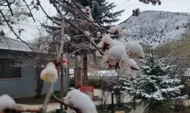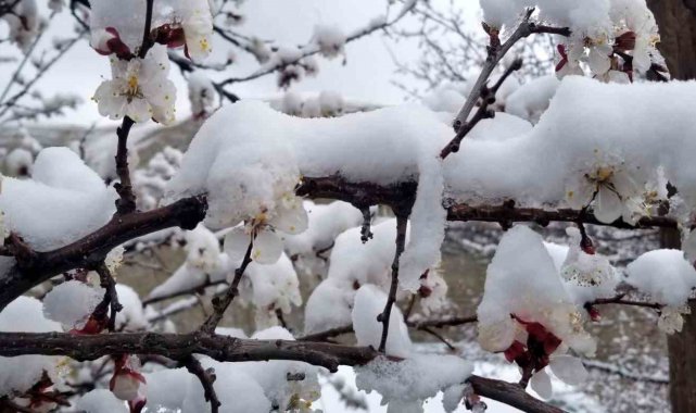 Erzincan'da nisan ayında yağan kar, çiçek açan meyve ağaçlarını kar altında bırakırken, zirai don olayı vatandaşı korkutuyor.