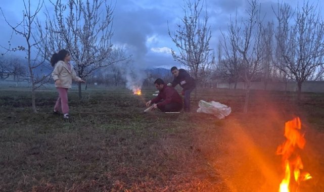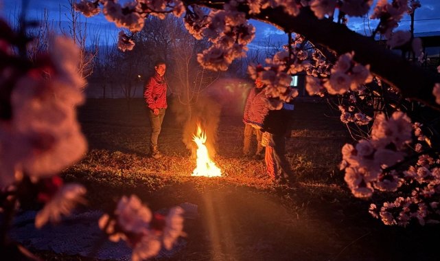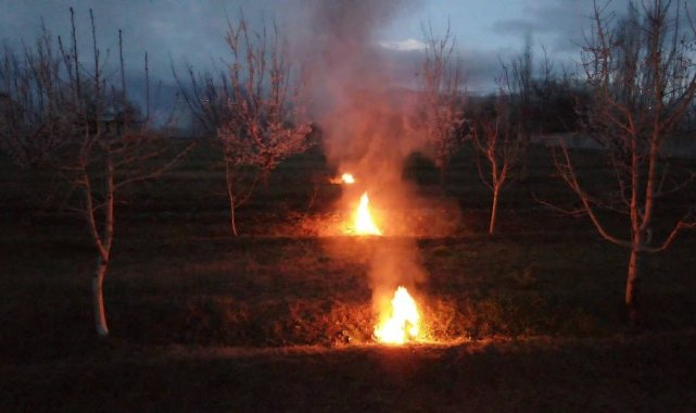 Baharın gelişiyle birlikte kayısı başta olmak üzere elma, kiraz ve diğer meyve ağaçlarının çiçek açtığı kentte, ani sıcaklık düşüşleri üreticileri endişelendiriyor. Gece boyunca bahçelerinde nöbet tutan çiftçiler, farklı noktalarda kontrollü ateşler yakarak oluşan ısı ve duman sayesinde ağaçların zarar görmesini önlemeye çalışıyor.