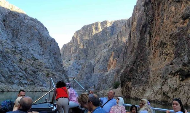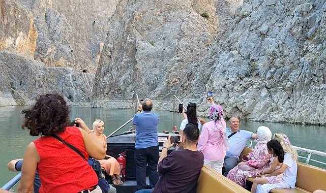 Erzincan'da dünyanın ikinci büyük kanyonunda tekne keyfi yapıp dağ keçilerini izliyorlar