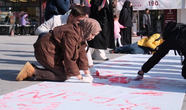 Erzincan'da 50 metre uzunluğundaki bez üzerine el izleriyle "Şiddete Hayır" mesajı verildi; etkinlik geniş katılımla farkındalık oluşturdu. Prof. Dr. Mehmet Kavukçu'nun performansı ve vatandaşların el izleriyle destek verdiği etkinlik, şiddetsiz bir toplum için güçlü bir çağrı yaptı.