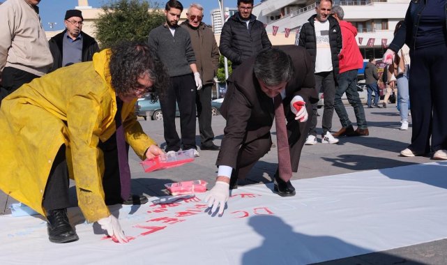 "Mehmet Kavukçu hocamıza bu anlamlı çalışmadan dolayı teşekkür ediyorum. Bugün burada, şiddetin insan hayatında hiçbir yerinin olmadığını göstermek için bir araya geldik. Kadın-erkek ayırmadan, aile içinde ve toplumda her türlü şiddetin karşısındayız. Hep birlikte el izlerimizi bırakarak güçlü bir mesaj verdik."
