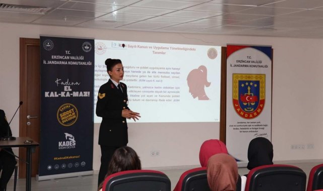 Erzincan İl Jandarma Komutanlığı tarafından kadın öğrencilere yönelik "Kadına Yönelik Şiddetle Mücadele" kapsamında bilgilendirme faaliyeti gerçekleştirildi.