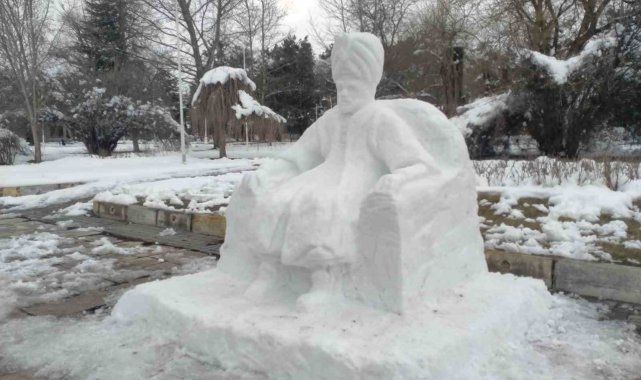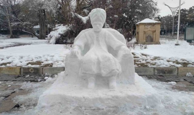 Erzincan'da kar yağışını sanata dönüştüren Güzel Sanatlar Fakültesi mezunu İsmail İşler, klasik kardan adam yerine kardan padişah yaptı.