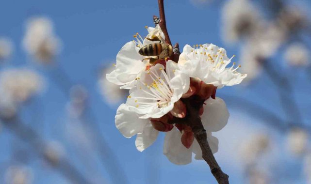 Erzincan'da ilkbahar mevsiminde havaların ısınması ile kovan bakımları yapılan bal arıları özgürlüğüne kavuşarak, ağaç dallarında açan çiçeklerle buluştu.