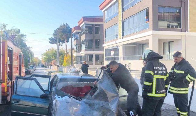 Erzincan'da park halindeki otomobil yandı. Yangın itfaiyenin müdahalesiyle söndürüldü.