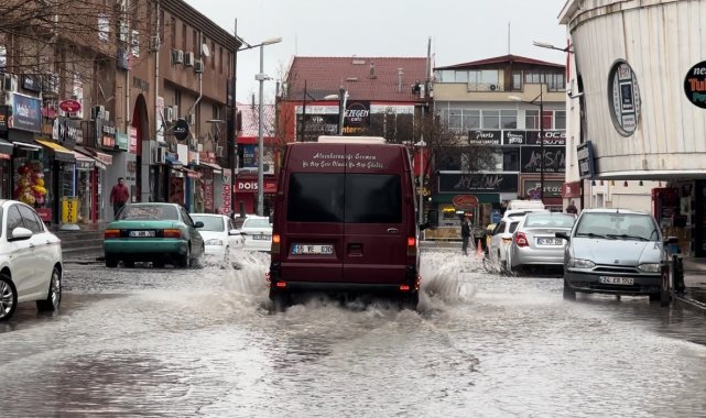 Erzincan'da etkili olan sağanak nedeniyle cadde ve sokaklar göle döndü. Araçlar göle dönen yollarda ilerlemekte güçlük çekti.