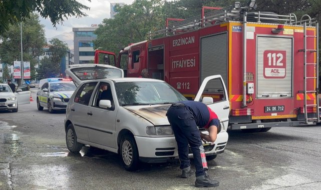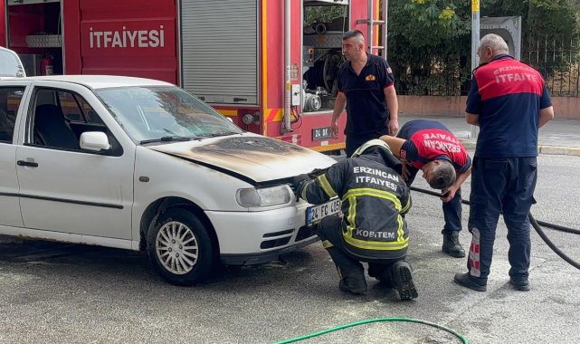 Erzincan'da seyir halindeyken ön kısmından alev alan otomobil itfaiye ekiplerince söndürüldü.