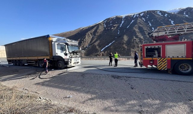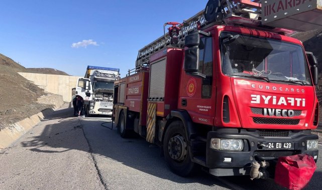 Erzincan'da seyir halindeki tırda çıkan yangın söndürüldü