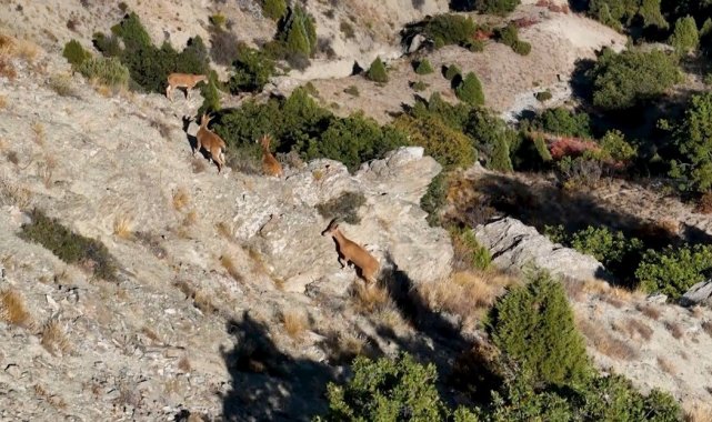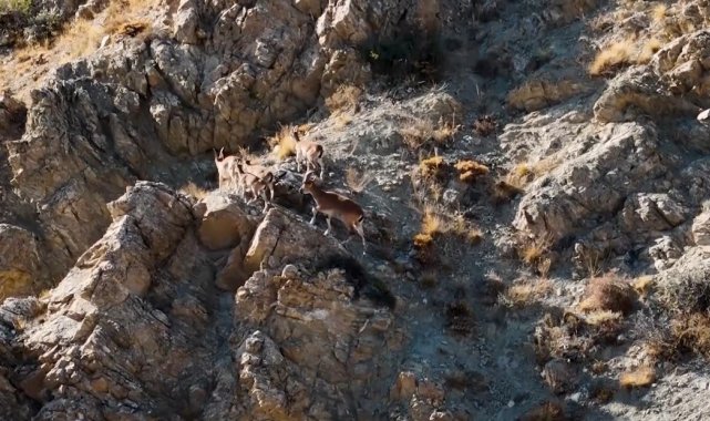 Erzincan'da yaban keçileri dron ile görüntülendi