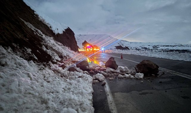 Kaya parçalarının yoldan kaldırılmasının ardından ulaşım kontrollü olarak sağlandı.