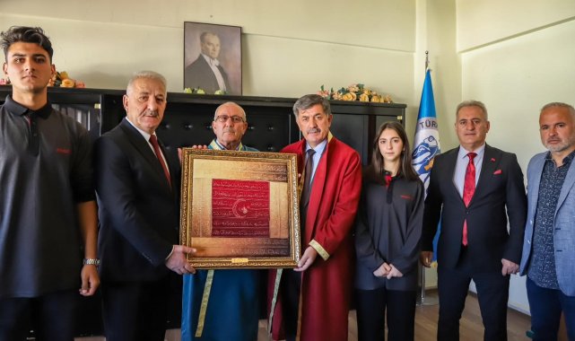 Ahilik Haftası etkinlikleri kapsamında Ahilik Komitesi Üyeleri Belediye Başkanı Bekir Aksun'a ziyaret etti. 38. Ahilik Haftası münasebetiyle; Ahilik Komitesi Üyeleri, Yeni Sanayi Sitesi esnaflarından "Yılın Ustası" unvanına layık görülen mobilya ustası Nuri İnci, Erzincan Mesleki Eğitim Merkezi öğrencilerinden "Yılın Çırağı" kadın terziliği öğrencisi Hayrunnisa Türkmen ve "Yılın Kalfası" harita ve kadastro öğrencisi İbrahim Baran, Belediye Başkanı Bekir Aksun'a ziyarette bulundular.