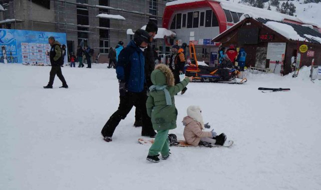 Ergan'da kayakçılar kayak keyfi yaşıyor. Kayak yapmayanlar ise aileleriyle birlikte Ardıçlı gölü manzarasının tadını çıkardı.