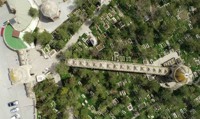 Erzincan'ın manevi mekânlarından Terzibaba türbesi ve mezarlığı drone ile görüntülendi.