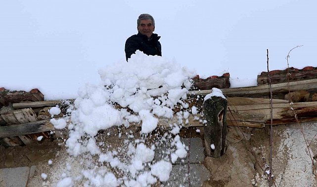 Refahiye ilçesine bağlı köylerde kardan toprak damlı evlerin üzeri kapandı. Bazı vatandaşlar damlarından su akmaması için kar küreme işine koyuldu.