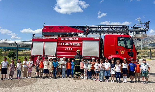 Erzincan Melikşah İlkokulu birinci sınıf öğrencileri öğretmenleri nezaretinde, Erzincan Belediyesi İtfaiye Müdürlüğünü ziyaret etti.