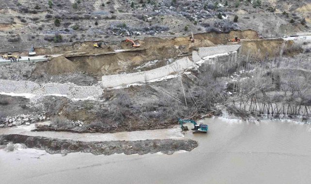 Önceki gün meydana gelen heyelan nedeniyle göçen Erzincan-Kelkit kara yolunda çalışmalar sürdürülürken yol ağır tonajlı araçlar için trafiğe kapalı bulunuyor.