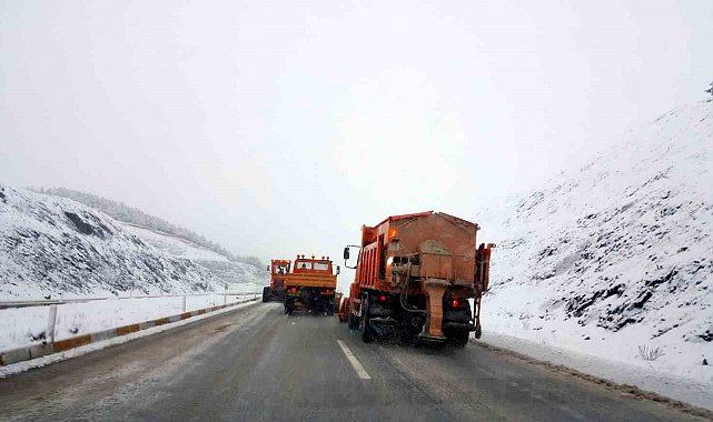 Karayolları ekipleri yolları açık tutmak için çalışma yürütürken, polis ekipleri de olası aksaklıkların önüne geçmek amacıyla Yalnızbağ Kavşağı'nda ağır tonajlı araçların geçişine izin vermedi.
