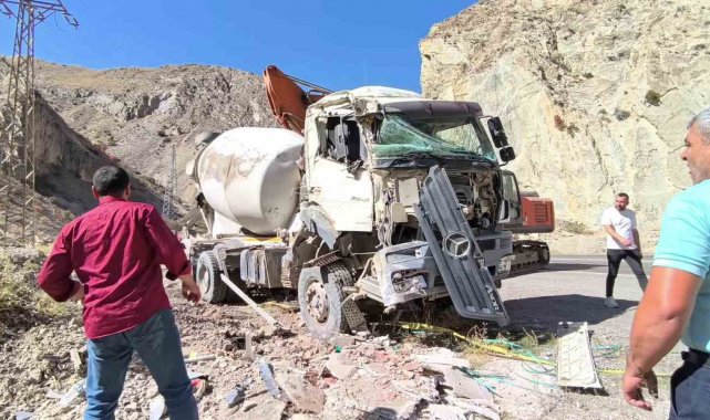 Erzurum-Artvin karayolunda kaza: Beton mikseri devrildi