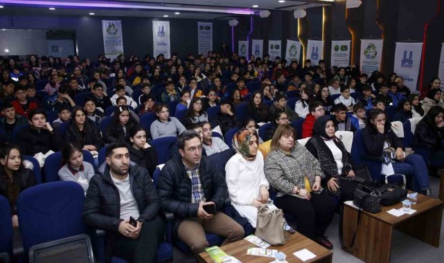 Bilim Erzurum'da toplanan öğrencilere yetkililer tarafından "Sıfır Atık" konusunda çeşitli bilgiler aktarıldı