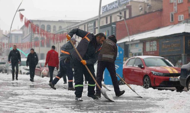 Erzurum Büyükşehir Belediyesi ekipleri, kent merkezinde karla mücadele çalışmalarını gün boyunca sürdürdü.
