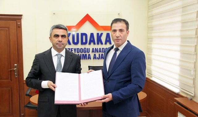 Kuzeydoğu Anadolu Kalkınma Ajansı (KUDAKA) hizmet binasında gerçekleşen imza törenine; KUDAKA Genel Sekreteri Oktay Güven ve Erzurum İl Tarım ve Orman Müdürü Alpaslan Kenger katıldı.