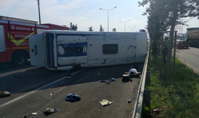 Erzurum'da devrilen servis aracındaki 6 kişi yaralandı