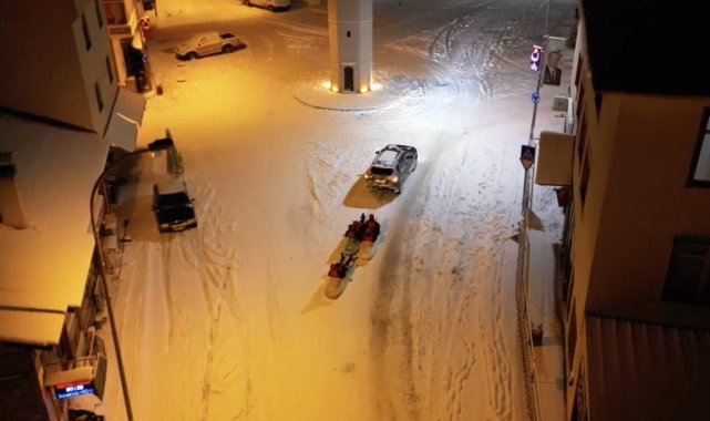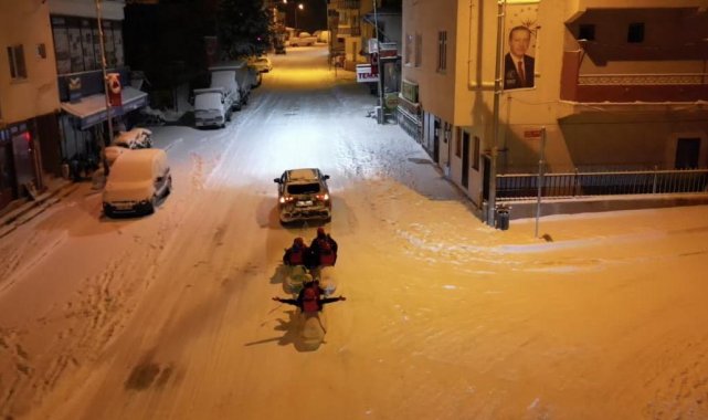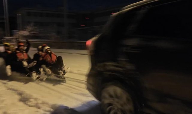 Tortum Uzundere Yerel Eylem Grubu (TUYEG) ekipmanlarıyla gerçekleştirilen etkinlik, cadde ve sokaklarda renkli görüntülere sahne oldu. Akşam saatlerinde kar yağışının yoğunlaşmasıyla birlikte ilçe merkezi beyaza bürünürken, geç saatlerde cadde ve sokaklarda araç lastikleriyle kayan gençleri gören TUYEG Dernek Müdürü Musa Han ile İHA Muhabiri Taner Sarı harekete geçti. Saat 24.00 sıralarında derneğe ait kano ve güvenlik ekipmanları temin edilerek, kanolar bir aracın arkasına bağlandı.