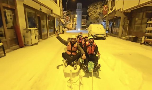 İlçe gençleri, öğretmenler ve memurlardan oluşan grup, göl ve nehirlerde kullanılan kanolara binerek trafiğe kapalı cadde ve sokaklarda kar üzerinde kaydı. Etkinlik boyunca katılımcılar hem eğlendi hem de unutulmaz anlar yaşadı.