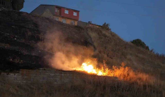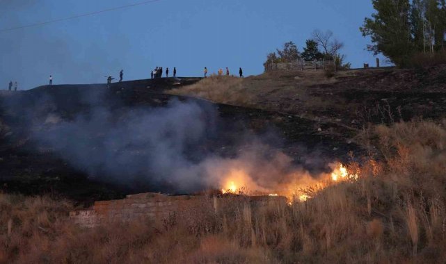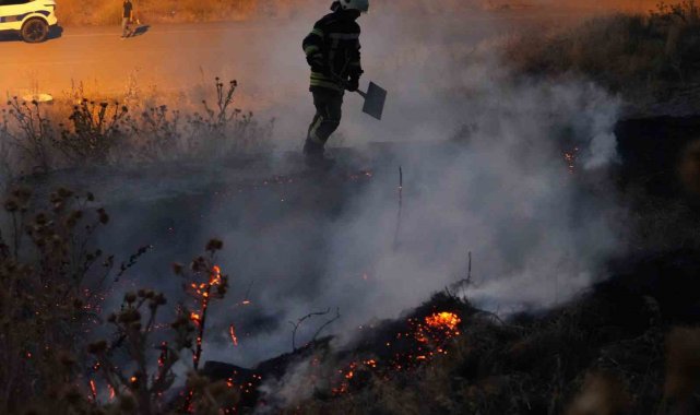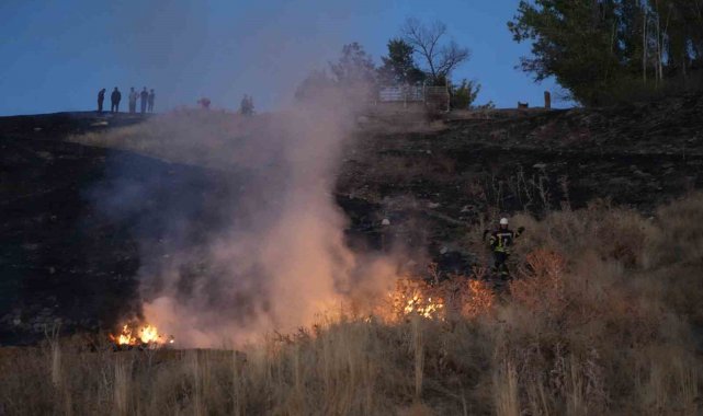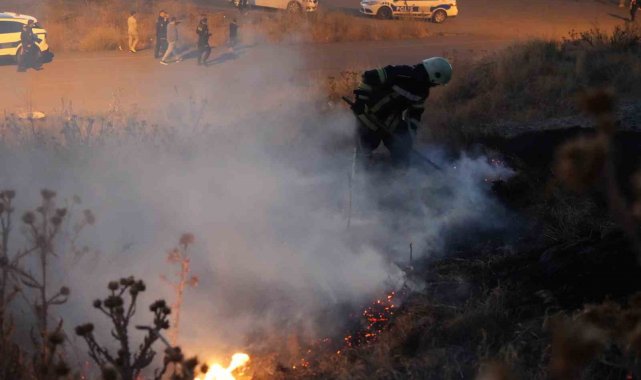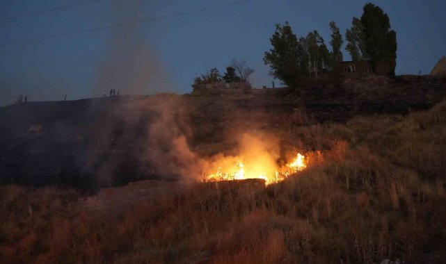 Erzurum'da havai fişek nedeniyle çıkan ot yangını itfaiye ekiplerince söndürüldü.