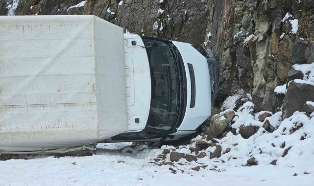 Edinilen bilgiye göre, İspir-Yusufeli karayolu Güllübağı Tüneli çıkışında kayganlaşan yolda sürücüsünün kontrolünden çıkan kamyonet kayalıklara çarparak devrildi. Kazada araç sürücüsü hafif yaralandı. Kaza sonrası jandarma ekipleri bölgede güvenlik önlemleri alırken, sürücülerin bölgeden geçişlerinde dikkatli olmaları istendi.