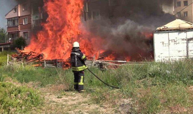 Erzurum'da bir inşaatta meydana gelen yangın bir anda büyüyerek itfaiye ekiplerinin zamanında müdahalesiyle çevreye sıçramadan söndürüldü.
