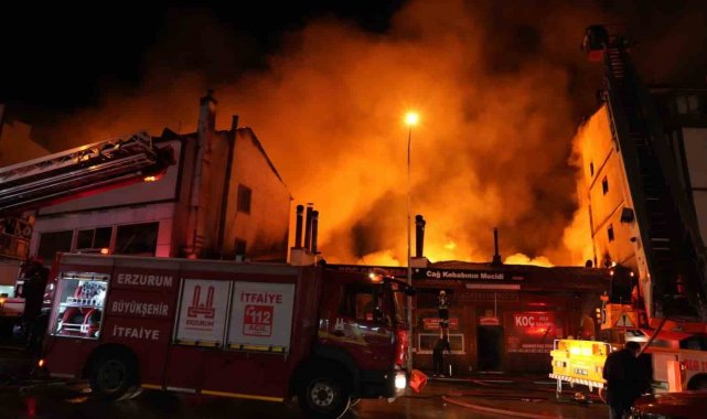Erzurum'un Yakutiye ilçesinde bulunan cağ kebabı dükkanlarında çıkan yangın, onlarca itfaiye ekibi, Emniyet Müdürlüğü'ne ait TOMA'lar ve Orman Bölge Müdürlüğü'nden gelen ekiplerce kontrol altına alındı.