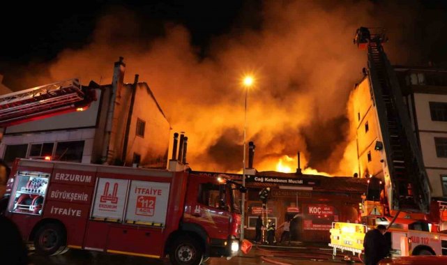 Yakutiye ilçesi Kongre Caddesi'nde cağ kebabı lokantasının çatısında başlayan ve kısa sürede geniş bir alanda etkili olan yangın evlere ve otele sıçradı. Yangının ardından bölgeye gelen Erzurum Valisi Mustafa Çiftçi'nin talimatıyla kamu kurum ve kuruluşlarından takviye ekipler bölgeye sevk edildi. Bölgede bulunan çok sayıda iş yerine de sıçrayan yangında dükkan sahipleri iş yerlerindeki eşyaları dışarı çıkarmak için yoğun çaba harcadı.